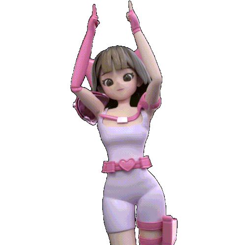 Cute 3D animated girl with cat ears and a pink outfit, performing a lively dance.