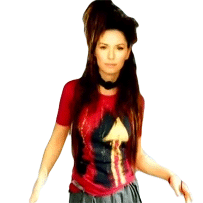 Shania Twain shows off her dance moves, jiggling and shaking with energy. A fun sticker for feeling good.