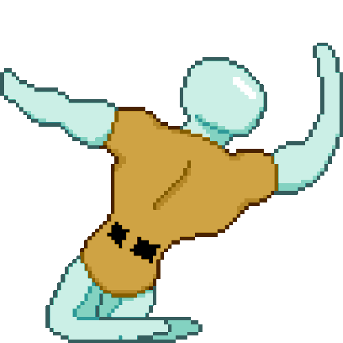 Pixel art Squidward from Spongebob Squarepants dancing with pink sparkle effects emanating from his rear.