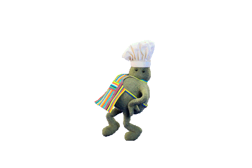 The adorable Tiny Chef, wearing a chef's hat and colorful scarf, joyfully dances to the beat.