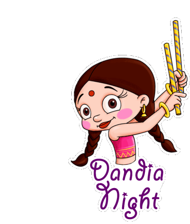 Chutki from Chhota Bheem joyfully dances with dandiya sticks, celebrating Dandia Night and Navratri.