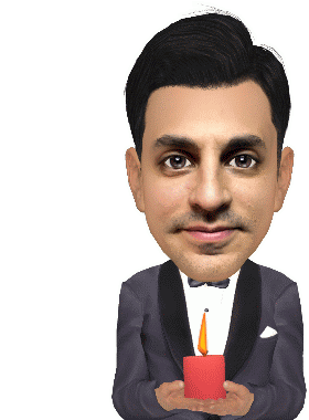 Danfrigolette, also known as Frigolette, a caricature in a suit, holds a lit red candle with a serious expression.