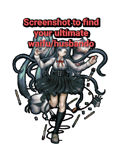 Screenshot this Danganronpa sticker to find your ultimate waifu or husbando. Features a dynamic character pose.