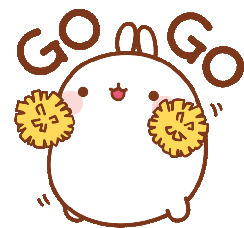 A cute cartoon bunny with pom-poms cheers 'GO GO', perfect for encouragement and motivation.