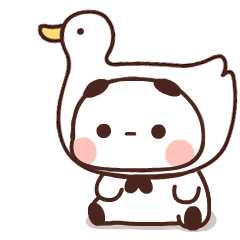 Cute Dudu Bubu, a cartoon panda, sits wearing an Aggie duck costume, showing a brief sad expression.