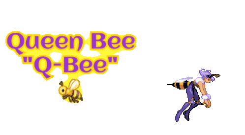 Animated sticker featuring Darkstalkers character Queen Bee Q-Bee, emerging from a beehive with a logo.
