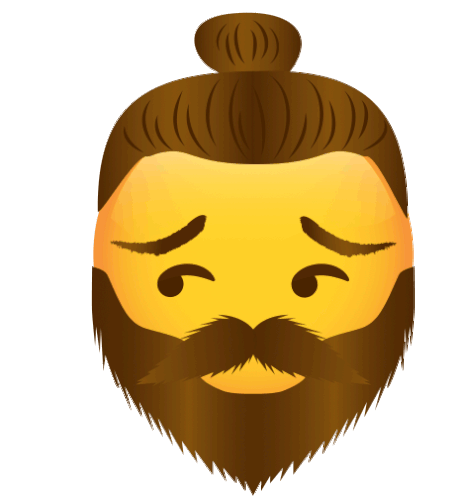 An animated emoji of a bearded man with a man bun, showing a tense and stressed expression, related to mental health awareness.
