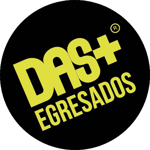 A vibrant yellow and black logo sticker featuring 'DAS+' and 'EGRESADOS', representing the Dasmas brand for graduates.