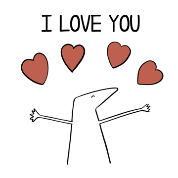 A simple animated character with outstretched arms and 'I LOVE YOU' text, expressing affection and warmth.