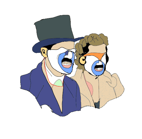 Daxnorman's abstract sticker captures 'couple goals' through a surreal transformation of two faces, featuring a top hat and distorted expressions.