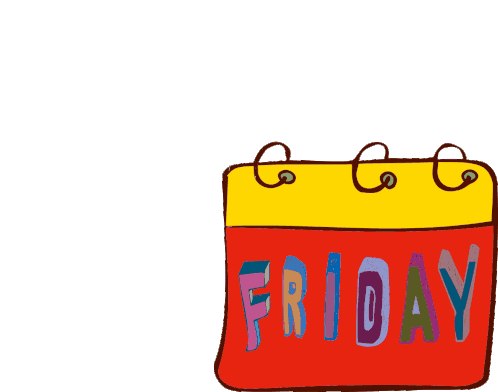 An animated sticker of a colorful calendar page displaying the word 'FRIDAY' in shifting, vibrant letters.