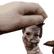 A stylized head statue, likely representing The Unknown from Dead by Daylight, held in hands.