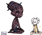 The Hag from Dead by Daylight, a terrifying killer, flashes a wide, unsettling smile, showcasing her happy and grotesque expression.