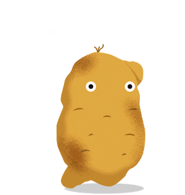 An animated potato character, possibly Dbsbank Dbszfw, blinks and changes expressions in a cute and playful manner.