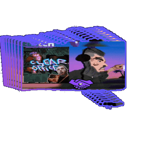 Dclxviclan's 'Clear Office' game sticker featuring two stylized men shaking hands with a glitchy effect.