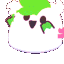 A pixel art animated sticker of a chicken's head with vibrant pink and purple feathers and an orange beak.