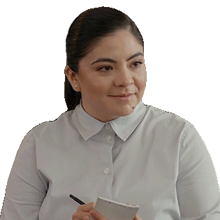 Luz Aldán nods her head and smiles warmly, holding a notepad and pen, indicating agreement or understanding.