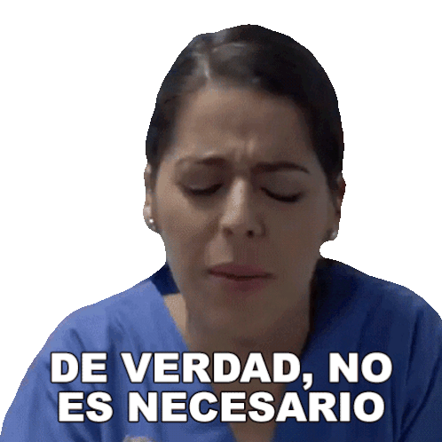 A woman in blue scrubs expresses that something is truly unnecessary with a concerned and slightly exasperated look.