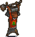Pixel art Christmas Mechanic from Dead Ahead Zombie Warfare, wearing antlers and a VR headset, chopping with an axe.