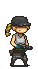 a pixel art of a girl holding a gun with the word club behind her .