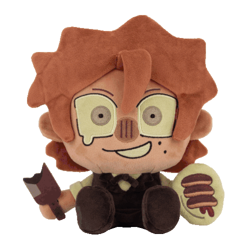 Rody Lamoree plush toy from Dead Plate, seen from behind, holding a book and a cookie.