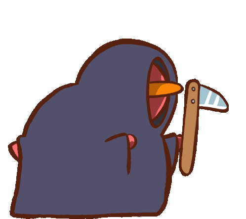 Cute animated sticker of a hooded Death Kiwi character holding a scythe, perfect for Halloween or spooky moods.