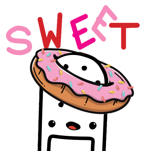 Dede Bandaid, a charming character, wears a pink frosted donut with colorful sprinkles as a hat, accompanied by the word 'SWEET' in vibrant letters.