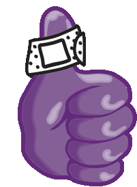 Animated thumbs up hand with a bandaid on the thumb, changing colors, by Dede Dedebandaid.