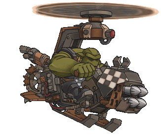 An Ork Deffkopta from Warhammer 40,000, piloted by a Greenskin, ready for battle with Shootas Blood Teef.