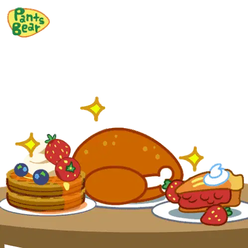 A cute character from 44 Gatos with a happy, drooling expression, anticipating a delicious meatball. Perfect for 'me encanta' moments.