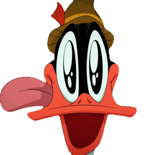 Pato Lucas (Daffy Duck) with wide eyes and tongue out, expressing extreme delight or 'delicioso!'