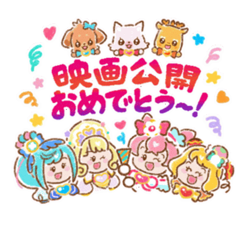a drawing of a group of girls and a dog with chinese writing behind them