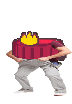 Pixelated Cround from Deltarune holding a red ball, wearing a crown. A charming game character sticker.
