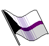 A pixel art animation of a demisexual pride flag waving gently, featuring black, white, grey, and purple stripes.