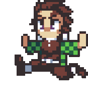 Tanjiro Kamado from Demon Slayer in a dynamic pixel art style, running or jumping with his iconic checkered haori.