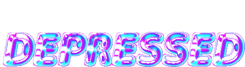 Animated sticker featuring the word 'PRESS' in a bubbly, iridescent blue and purple font, shimmering with a sad mood.