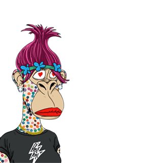 A Desperate Ape Wife character with pink hair and colorful spots wishes a cheerful good morning.