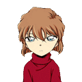 Haibara Ai from Detective Conan receives an affectionate head pat and a gentle cheek pinch, showing a cute, embarrassed reaction.