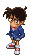 Pixel art sticker featuring Detective Conan (Conan Edogawa) in his iconic blue jacket and glasses.