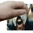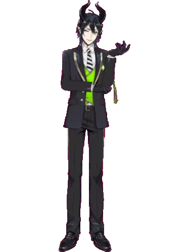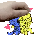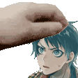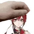 Deuce Spade from Twisted Wonderland receives a gentle head pat from a pixelated hand, looking surprised.