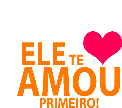 A sticker with the Portuguese phrase 'He loved you first!' and a pink heart, conveying a message of divine love.