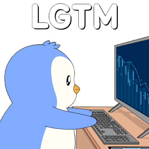 a cartoon of a penguin looking at a computer screen with lgtm written above it