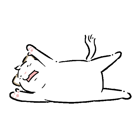 A cartoon cat lies on its back, utterly devastated and fatigued, expressing extreme exhaustion with a drawn-out cry.