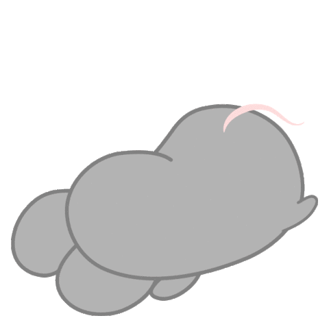 A cute grey mouse character lies down, appearing utterly exhausted and devastated, conveying the feeling of a hard time or a long, tiring day.