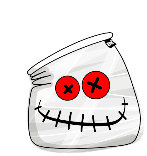 A mischievous cartoon devil character with red horns and X-eyes laughs with a devilish grin, featuring an '8B' label.
