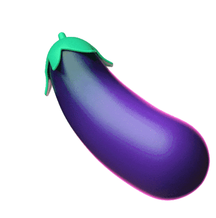 Animated sticker of a vibrant purple eggplant with a green stem, commonly known as 'Dick' in emoji slang.
