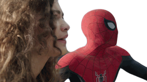 Spider-Man (Tom Holland as Peter Parker) looks intently at MJ (Zendaya), a moment from No Way Home.