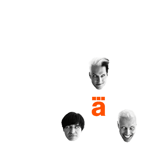 Stylized faces of Die Ärzte members Bela, Farin, and Rod with the band's iconic 'a' logo.
