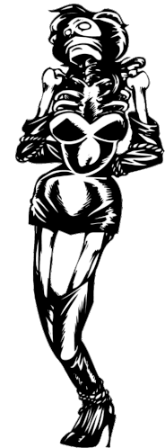 Animated black and white sticker featuring a stylized woman, possibly Gwendoline, inspired by the German punk band Die Ärzte, featuring Bela, Farin, and Rod.
