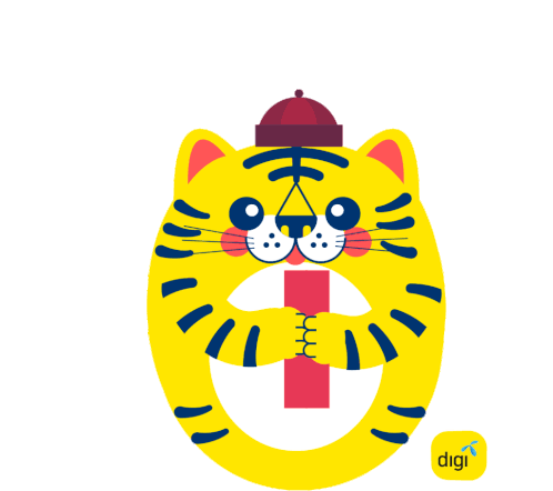 A festive Digi Digitelco sticker featuring a cute yellow tiger wishing 'Gong Xi Fa Cai' for Chinese New Year.